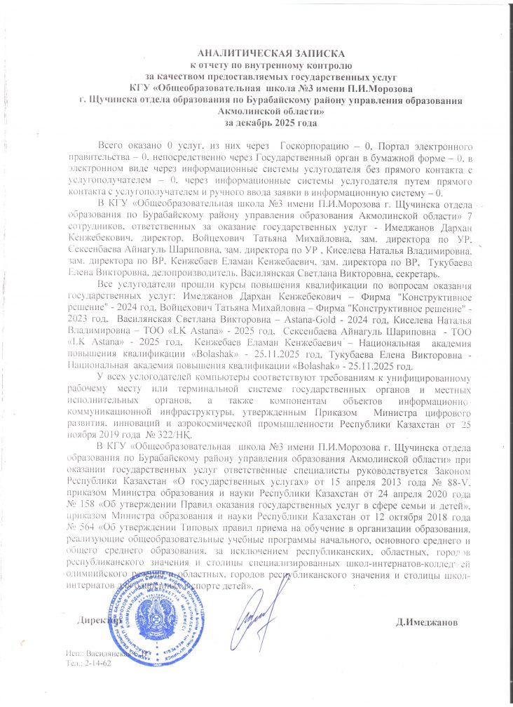 «Ақмола облысы білім басқармасы Бурабай ауданы бойынша білім бөлімі Щучинск қаласының П.И.Морозов атындағы № 3 жалпы орта білім беретін мектебі» коммуналдық мемлекеттік мекемесі